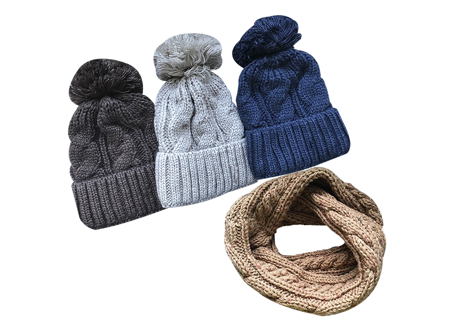 Hats/scarves - it's time to warm up. We have a big range of knitted hats and scarves. Different combinations and sets are possible